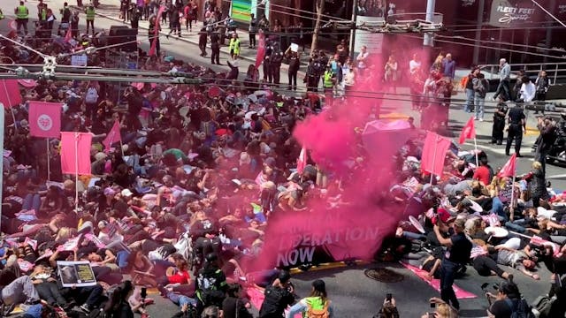 Colorful and spine-tingling, with flairs and drums, hundreds fall to the ground on the streets of San Francisco. But, what about those watching? What are they thinking and feeling? Watch, listen and find out. TheirTurn.net's Donny Moss is on the case.